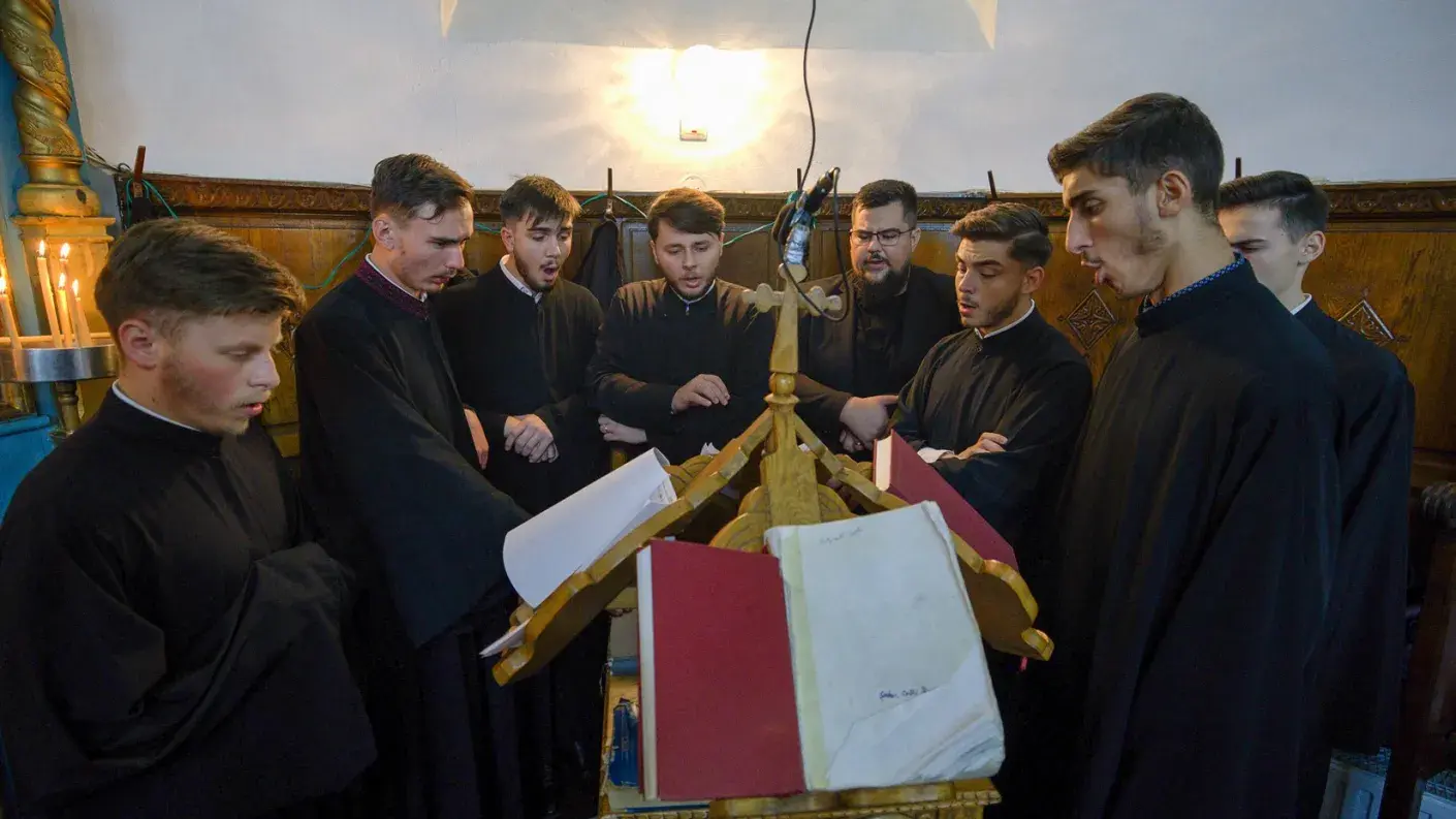 Răspunsurile liturgice au fost date de Grupul psaltic al Seminarului Teologic „Sfântul Ioan Gură de Aur” din Huși, coordonat de diaconul Vlad Mironescu.