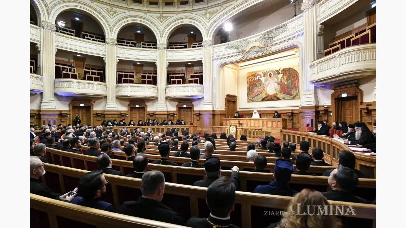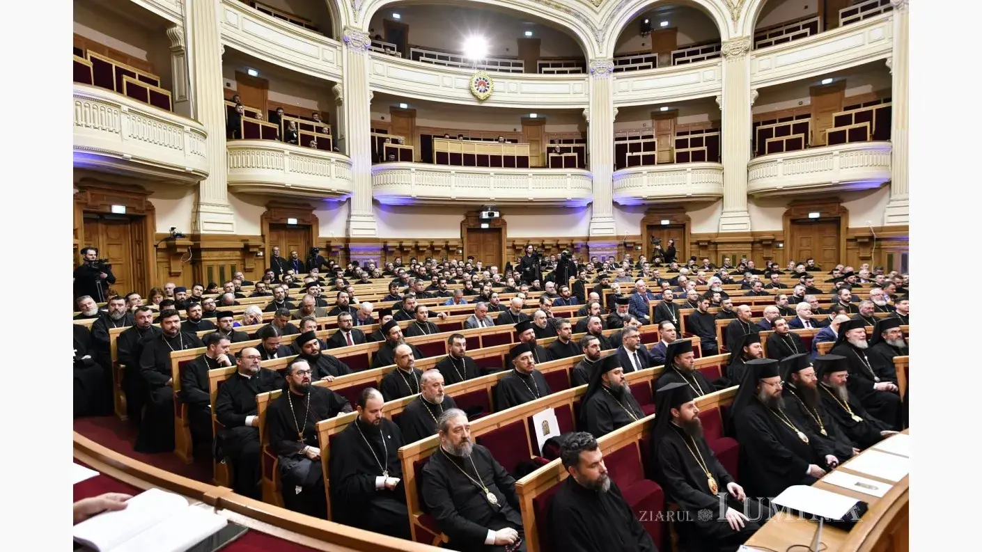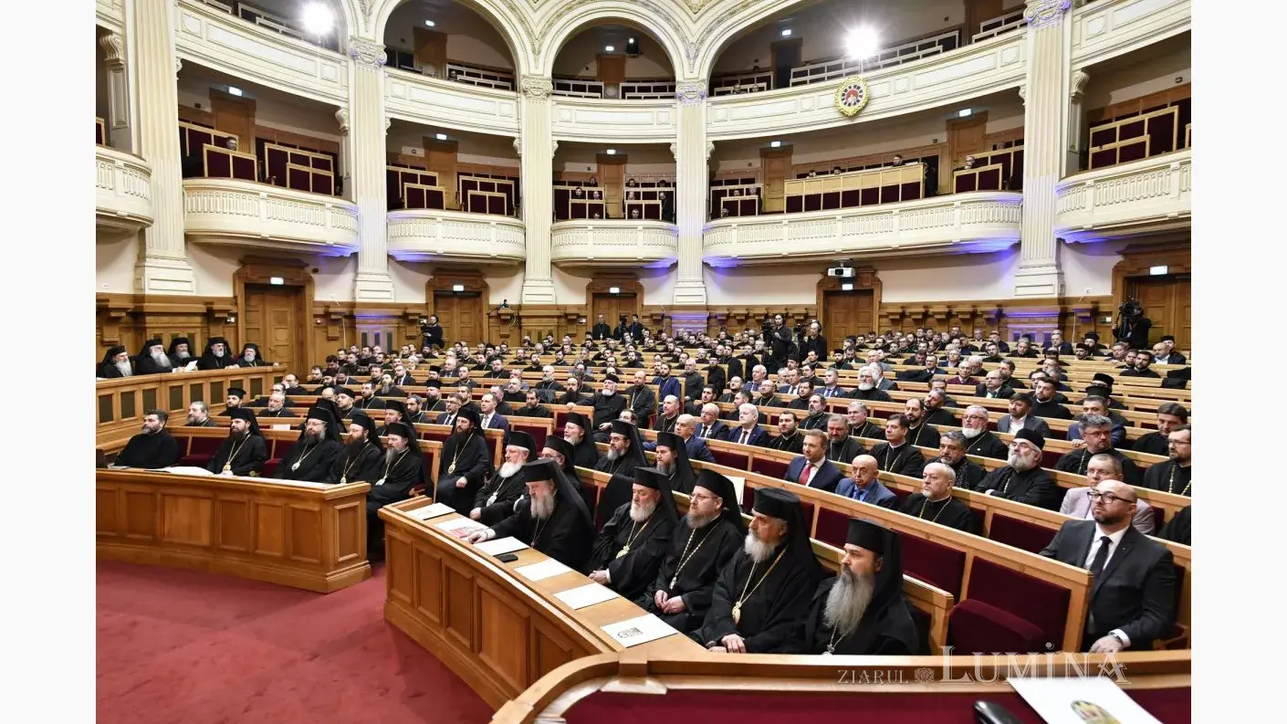 Aula Magna „Teoctist Patriarhul” a Palatului Patriarhiei din București a găzduit, în seara zilei de marți, 4 februarie 2025, ședința solemnă a Sfântului Sinod al Bisericii Ortodoxe Române și a Adunării Naționale Bisericești, sub președinția Preafericitului Părinte Daniel, Patriarhul Bisericii Ortodoxe Române. Evenimentul festiv a încununat momentele deosebite de rugăciune petrecute în dimineața acestei zile la Catedrala Patriarhală și a fost dedicat împlinirii a 100 de ani de la ridicarea Bisericii noastre la rang de Patriarhie.