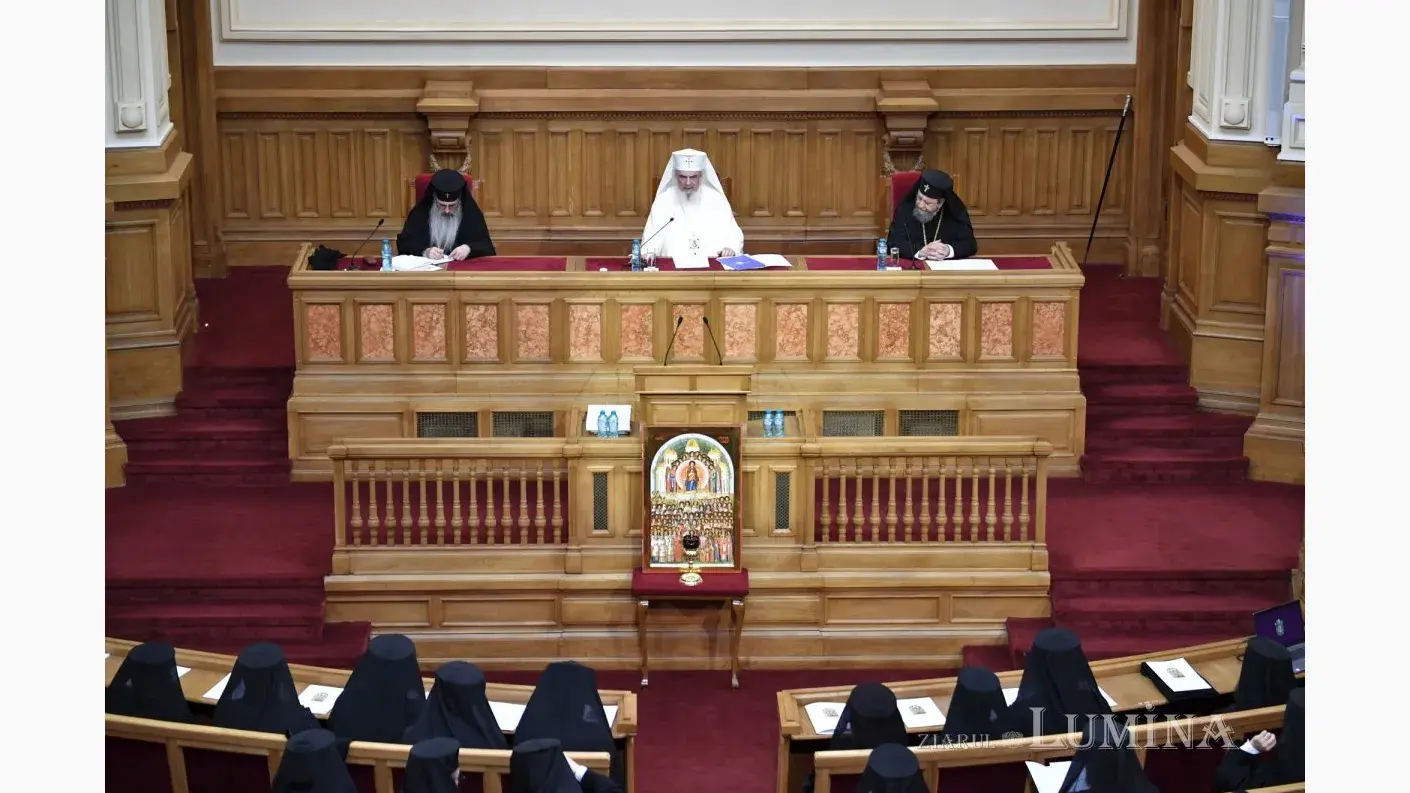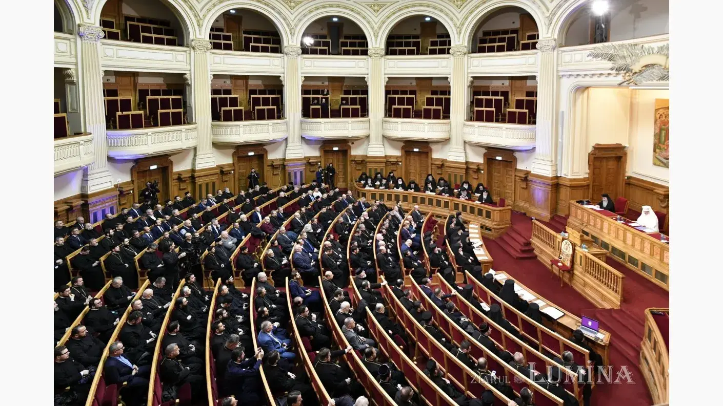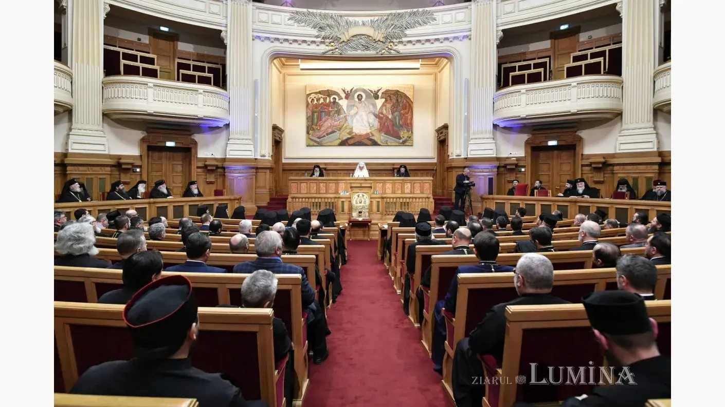 Aula Magna „Teoctist Patriarhul” a Palatului Patriarhiei din București a găzduit, în seara zilei de marți, 4 februarie 2025, ședința solemnă a Sfântului Sinod al Bisericii Ortodoxe Române și a Adunării Naționale Bisericești, sub președinția Preafericitului Părinte Daniel, Patriarhul Bisericii Ortodoxe Române. Evenimentul festiv a încununat momentele deosebite de rugăciune petrecute în dimineața acestei zile la Catedrala Patriarhală și a fost dedicat împlinirii a 100 de ani de la ridicarea Bisericii noastre la rang de Patriarhie.