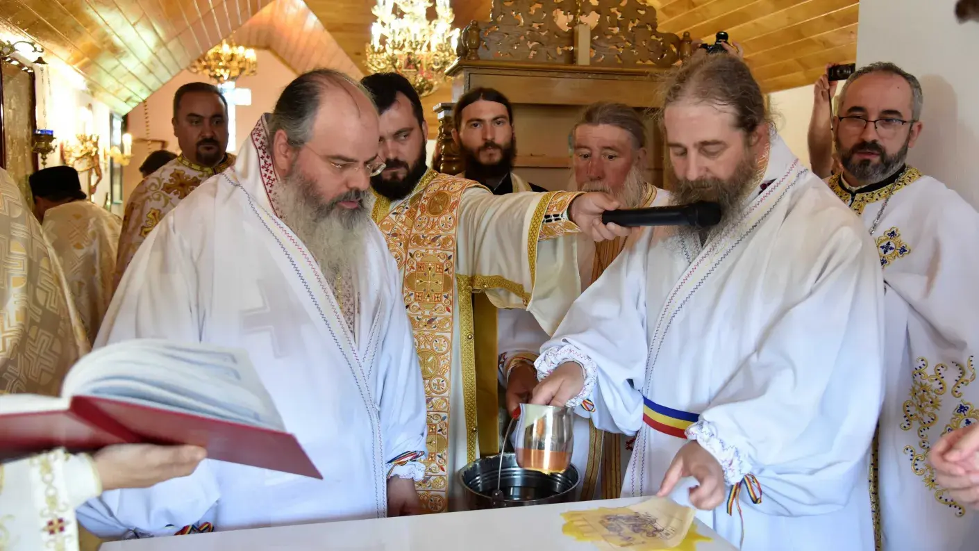 Slujba de sfințire a fost precedată de oficierea Sfintei Liturghii, de către un sobor de preoți.