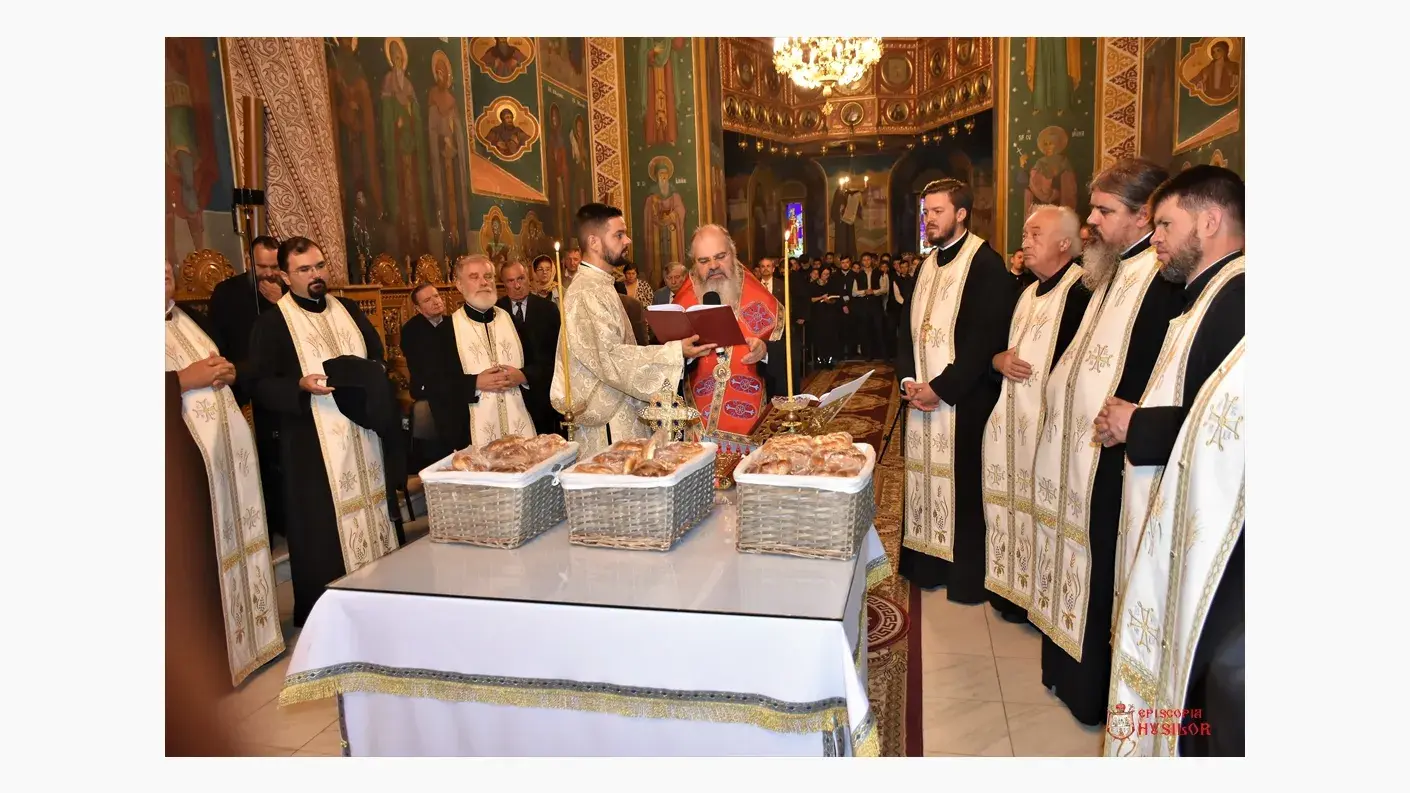 Evenimentul a fost precedat de oficierea unui Te Deum de mulțumire și a Parastasului la care au fost pomeniți toți Ierarhii Eparhiei, trecuți la Domnul, precum și cei care au avut un aport în reînființarea Episcopiei Hușilor. Slujba a fost oficiată de Preasfinţitul Părinte Episcop Ignatie, înconjurat de un sobor de preoţi din care au făcut parte participanţii la Simpozion şi membri ai Administraţiei Eparhiale.