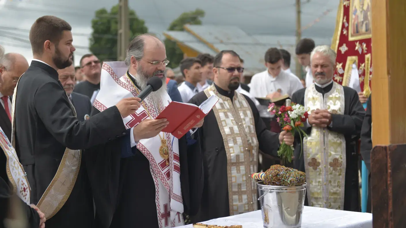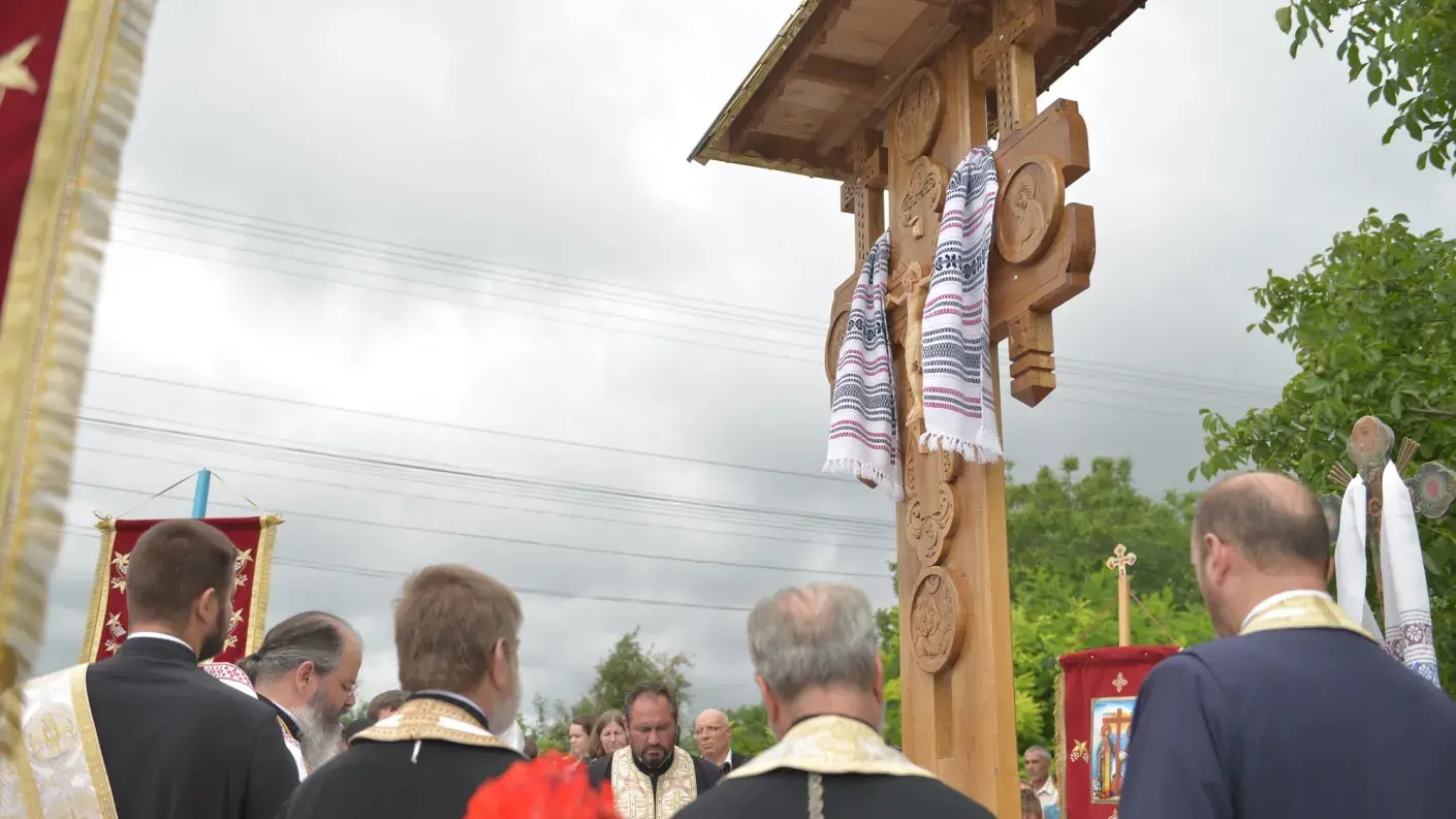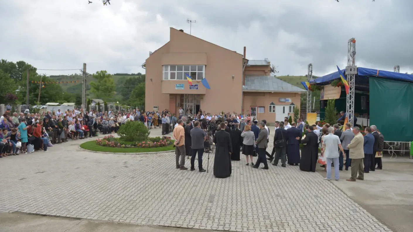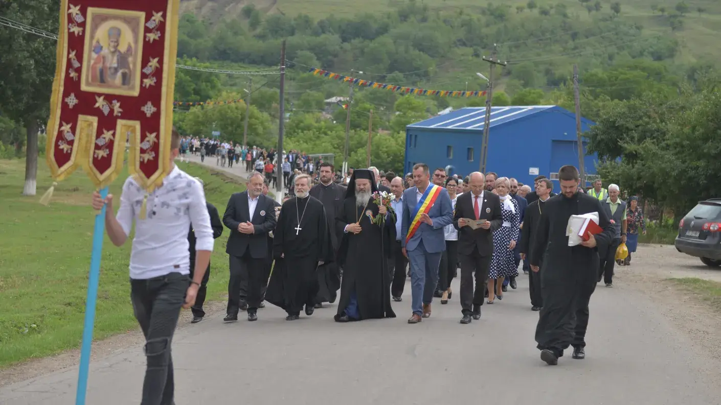 De aici, Ierarhul Huşilor, împreună cu preoții, invitații și numeroşi participanţi, au plecat în procesiune către centrul satului unde a fost sfințită o Troiță și unde Corala „Fantasia” a prezentat un scurt program artistic.