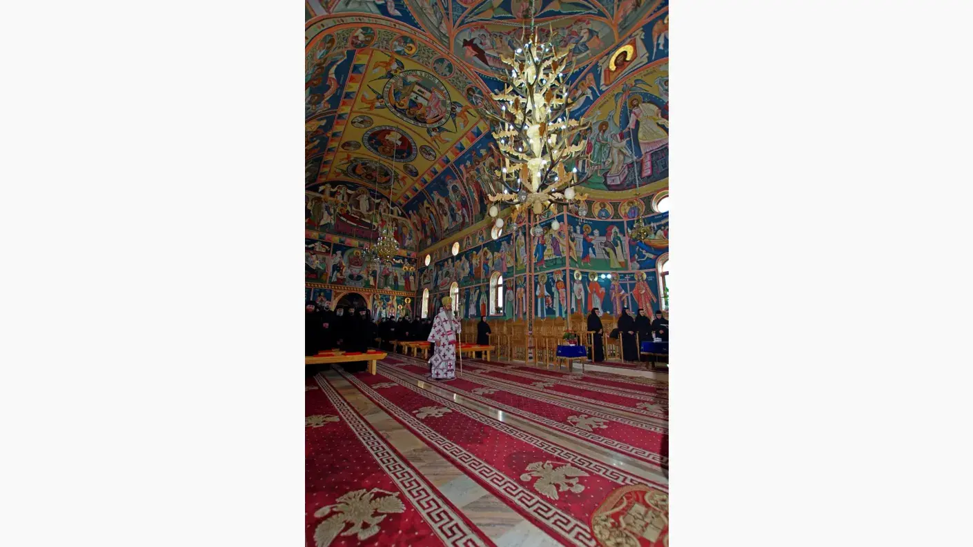 Evenimentul a început cu slujba Sfintei Liturghii oficiată de Părintele Episcop Ignatie în biserica mare a mănăstirii. Din soborul slujitorilor, alături de stareții și duhovnicii mănăstirilor din Eparhie, a făcut parte și părintele arhimandrit Melchisedec Ungureanu, starețul Mănăstirii Lupșa din Arhiepiscopia Alba Iuliei.