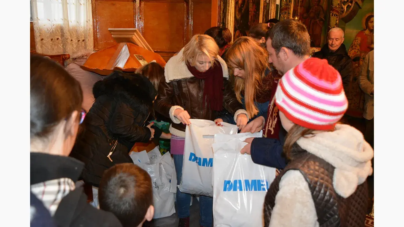 Pachetele pentru copii, constând în haine, încălțăminte și dulciuri s-au realizat prin contribuția mai multor studenți ai Facultății de Arhitectură Navală din cadrul Universității “Dunărea de Jos”din Galați, ai angajaților Șantierului Naval „Damen” Galați, și a firmei „Aluland B.V.” – Olanda.