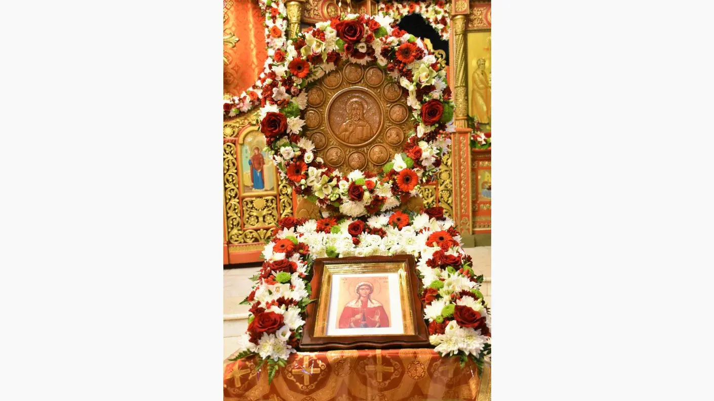 Aranjamentele florale care împodobesc baldachinul Sfintei Mari Mucenițe Chiriachi transmit ceva din gingășia, delicatețea și jertfa pentru credință care au împodobit sufletul Sfintei.