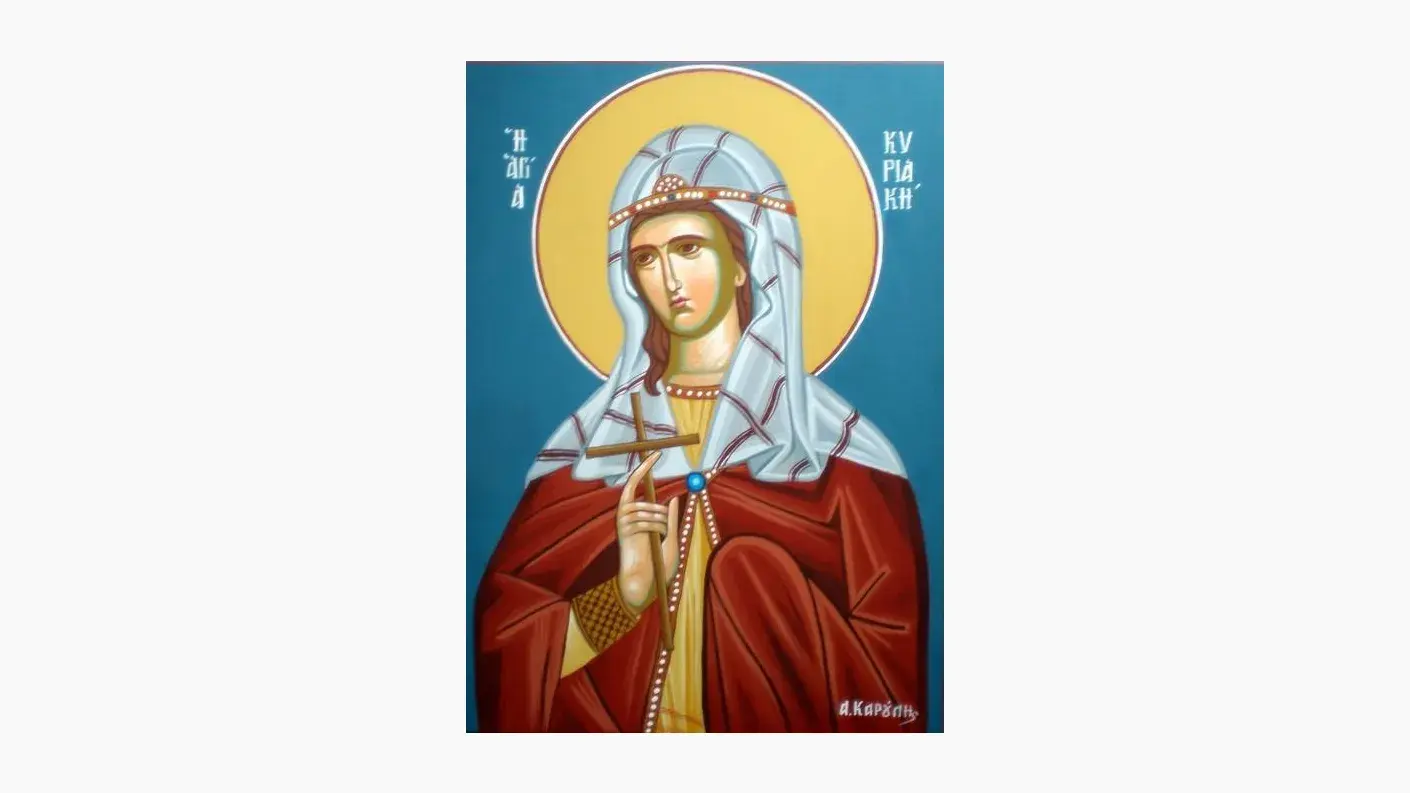 În zilele împăratului Diocleţian, la anul 282, era un creştin, anume Dorotei, împreună cu soţia sa, care se chema Evsevia. Aceştia, fiindcă erau fără de fii, s-au rugat lui Dumnezeu ca să le dea rod, făgăduind să-I dăruiască Lui pe copilul ce se va naşte. Deci a ascultat Dumnezeu rugăciunea lor şi au născut un prunc de parte femeiască în ziua de duminică, lucru pentru care au şi numit-o pe pruncă Chiriachi, ce înseamnă duminică. Deci botezând-o, au crescut-o cu învăţătura şi cuvântul Domnului, după Apostolul Pavel, păzind-o pe fecioară curată, fiindcă făgăduiseră a o afierosi lui Dumnezeu.