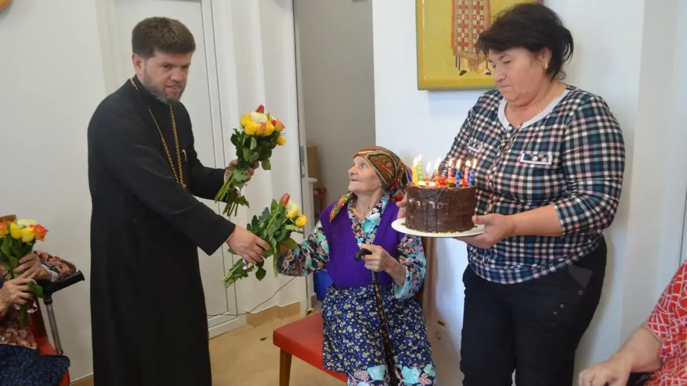 După slujbă, toți beneficiarii au fost sărbătoriți, primind în dar flori, felicitări și tort.